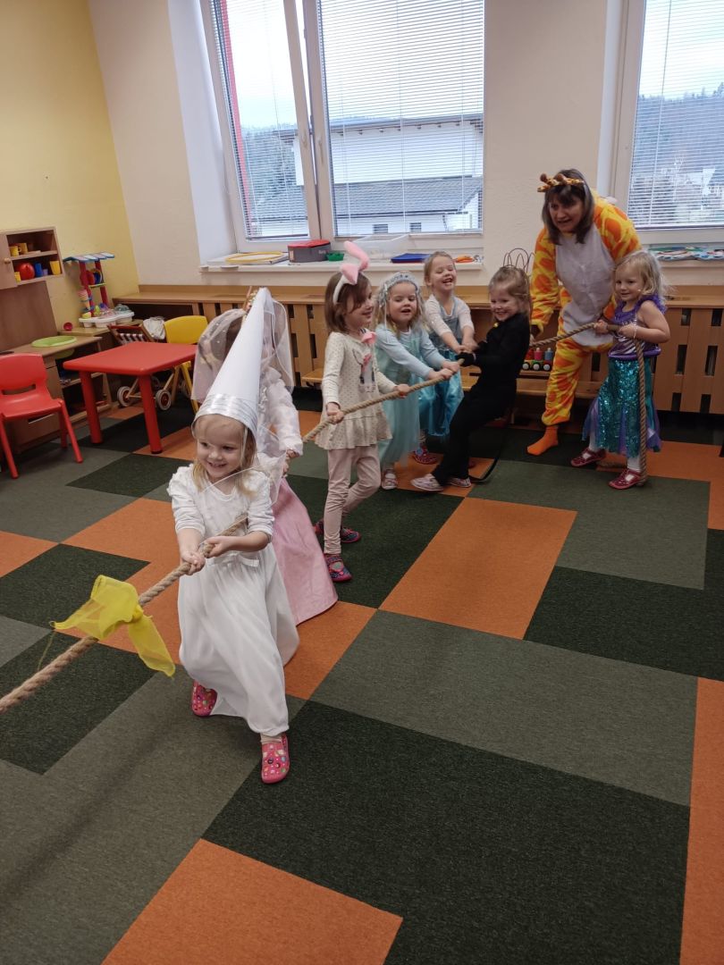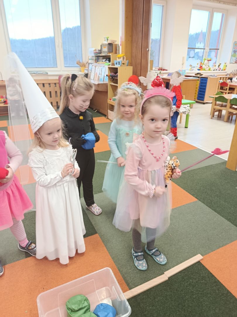 Ve středu 11. února se proměnila třída Berušek v místo plné pohádkových bytostí, princezen i zvířátek. Děti představily své hezké masky svým kamarádům a mohly si vyzkoušet připravené zábavné aktivity. Ke každému karnevalu patří písničky a tancování. Děti si oblíbily píseň: ,,Pod dubem, za dubem.." Nechyběly ani soutěživé hry. Na závěr děti dostaly sladkou odměnu. Věříme, že si děti odnesly domů spoustu hezkých zážitků.