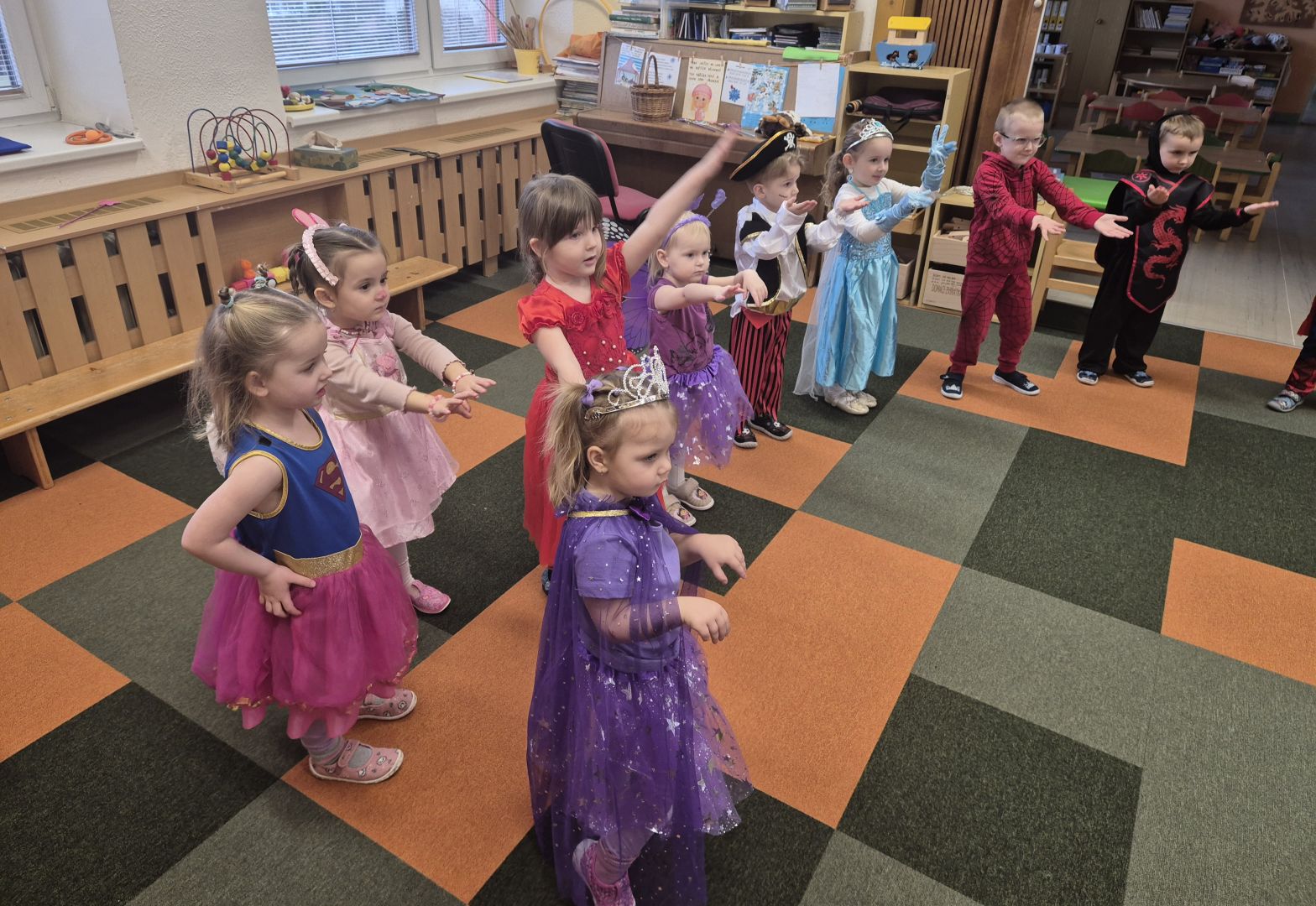 Dne 11. února 2026 proběhl v naší MŠ ve třídě Sluníček veselý karnevalový den. Děti přišly v nádherných a nápaditých kostýmech a hned od rána panovala skvělá nálada.